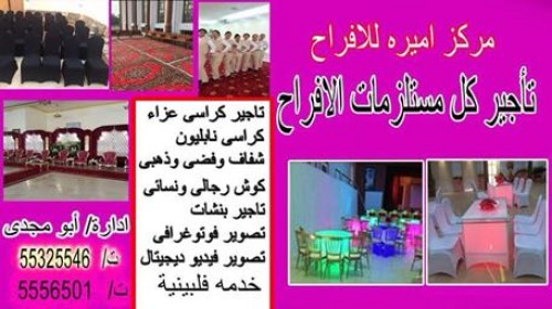 تاجير كوش رجالى ونسائى وكراسى نابليون دهبى وقضى وشفاف وكراسى عزاء