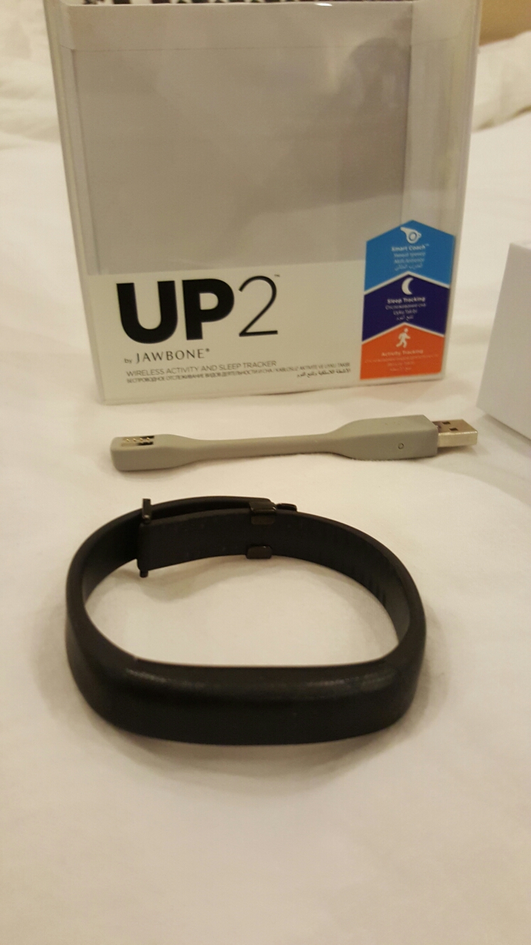 jawbone up 2 jawbone up2 سوار رياضي لحساب الخطوات ووالسعرات الحراريه عن طريق ابليكيشن للايفون و الاندرويد .. مستعمل مع الكرتون وكل شي موجود كأنه جديد .. استخدام خفيف ... سعره جديد ب 39 دينار.. سعر البيع 25 دينار