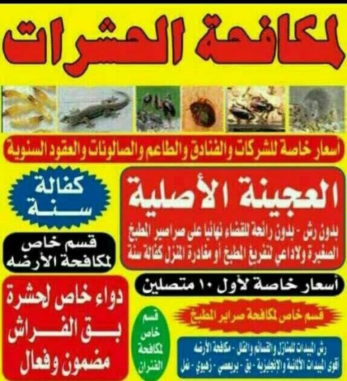 مكافحة حشرات وقوارض بارخص الاسعار. كفاله سنه. بدون ريحه