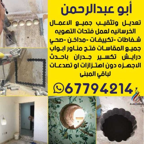 فتحات كور ليزر للشفاطات والتكييفات والمداخن والصحي جميع المقاسات ٦٧٧٩٤٢١٤