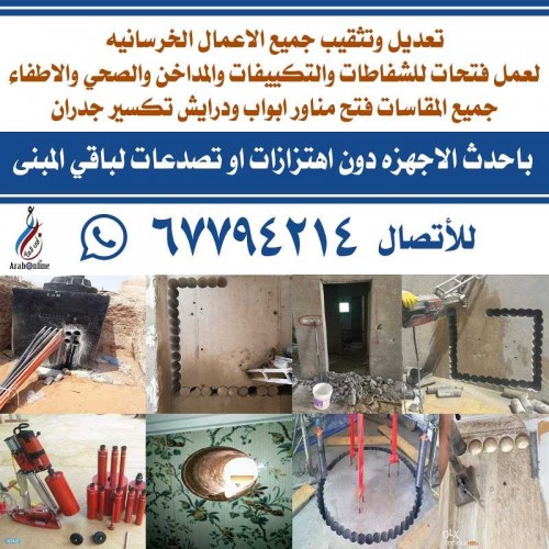 كور ليزر لتعديل وتثقيب جميع الاعمال الخرسانيه لعمل فتحات التهويه والصحي وفتح ابواب والدرايش