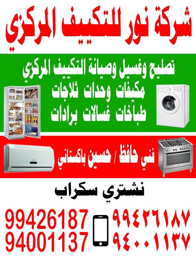 شركة نور للتكييف المركزى تصليح وغسيل وصيانة التكييف المركزى مكيفات وحدات ثلاجات طباخات غسالات برادات فنى باكستانى حافظ وحسين 99426187-94001137