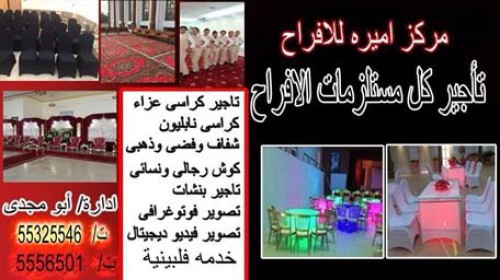 تاجير كراسى كراسى وطاولات وكل ما يلزم الافراح 55325546