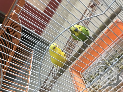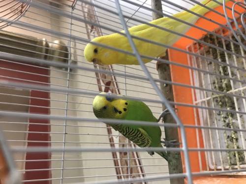 طيور عايشة 3 سنين ونص والله زوج لون الانثا اصفر والذكر اخضر